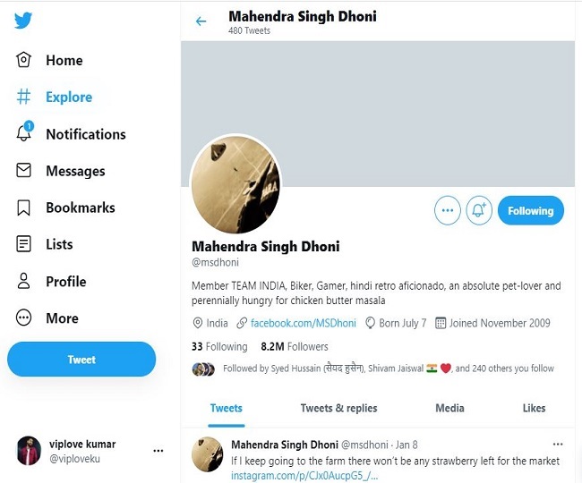 As per his tweet history, Dhoni last tweeted on January 8, 2021. Twitter requires users to log in to the account in six months to be considered eligible for verification. MS Dhoni has 8.2 million followers on Twitter as of today.